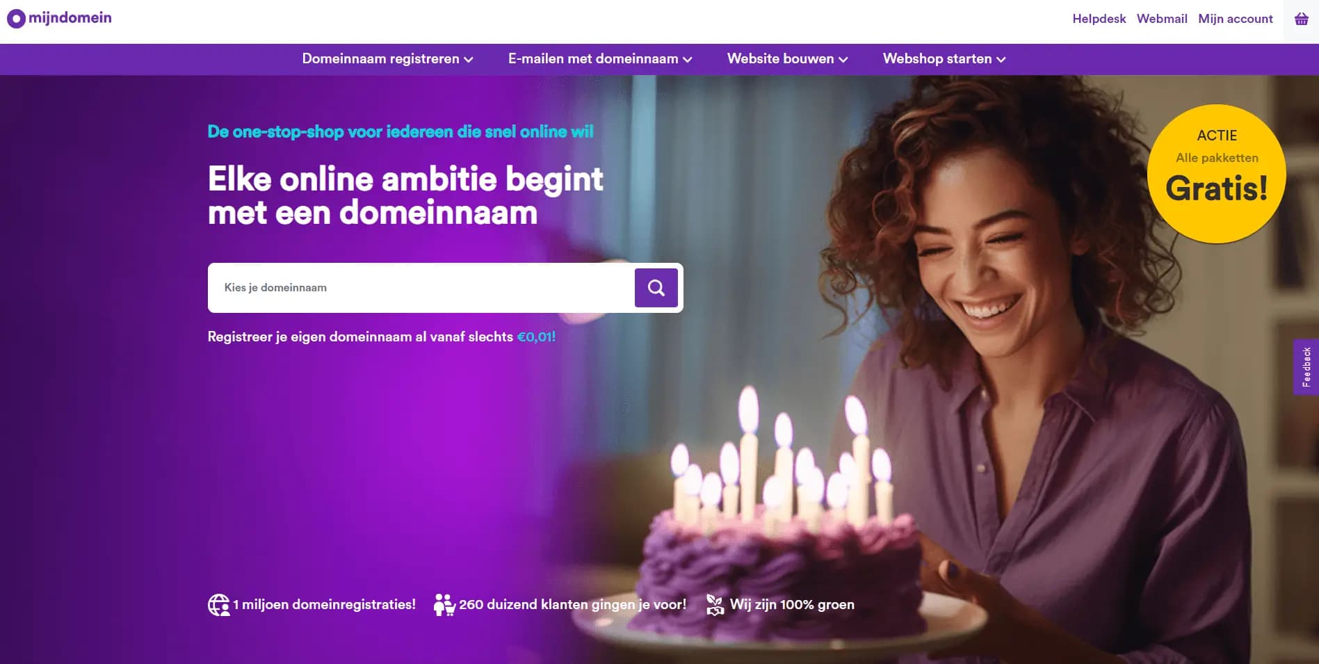 Mijndomein is de one-stop-shop voor iedereen die snel online wil. Met meer dan 260.000 klanten en méér dan een miljoen actieve domeinen is Mijndomein één van de belangrijkste spelers in haar branche. De uitdaging: het productpropositie verandert (wordt duurder), het speelveld wordt voller en we zoeken feitelijk meer resultaat binnen hetzelfde budget.