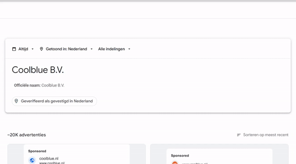 Adverteerders moeten zich sinds eind 2022 verifiëren als ze in Google Ads willen adverteren. Hierdoor kan je makkelijk gluren bij de buren! De meerwaarde hiervan is dat je precies kan zien op welke manier zij adverteren. Welke overtuigingstechnieken gebruiken ze? Welke CTA’s worden ingezet? Biedt jouw concurrent beloftes die jij (nog) niet kan waarmaken? Werk aan de winkel! En kun jij zaken bieden die de concurrent niet aanbiedt? Dan heb je daar jouw toegevoegde waarde.
