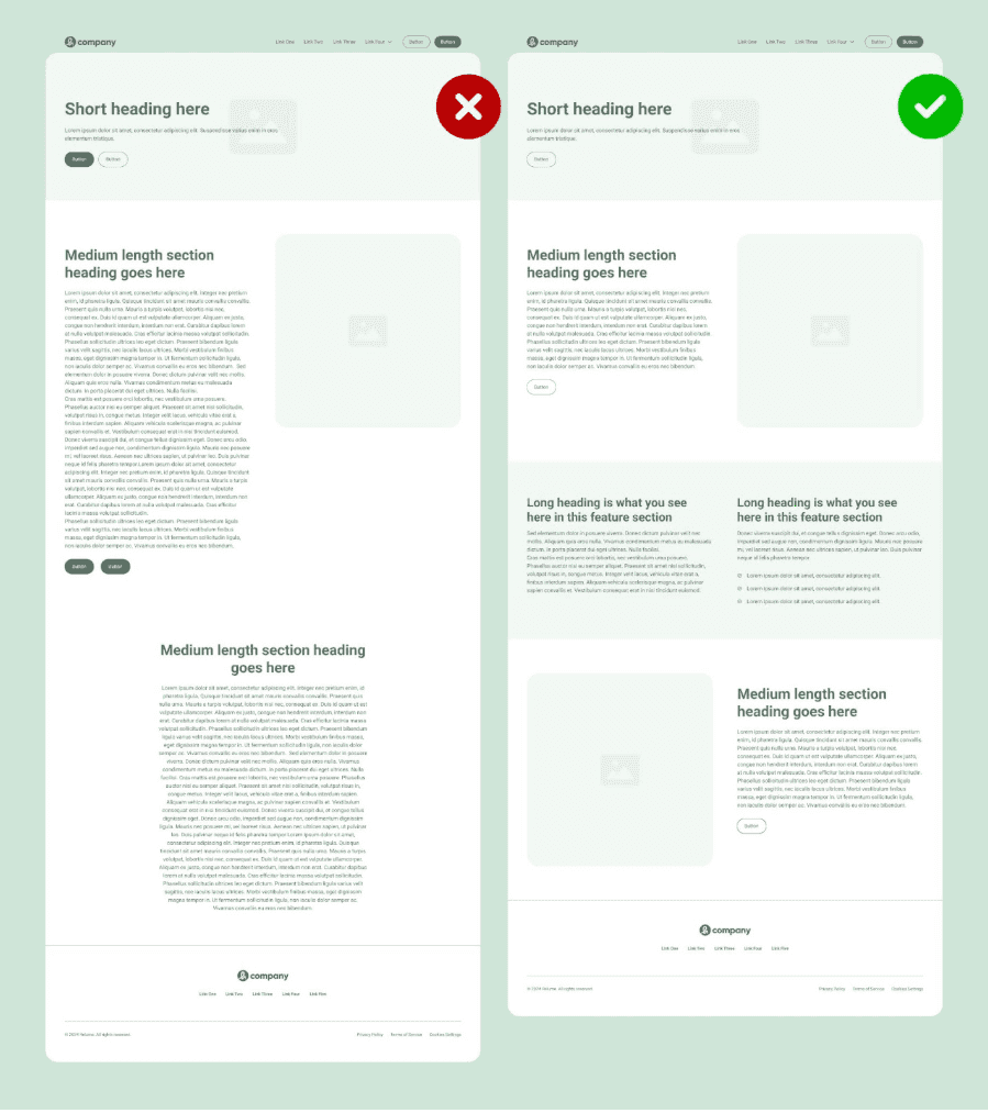 Designers denken goed na over ritme en structuur: hoe de bezoeker scrolt, kijkt en klikt. Maar als de content anders wordt ingevuld dan gedacht, kan die flow verloren gaan. Bijvoorbeeld doordat er te veel tekst op één plek komt, of een titel of call-to-action ontbreekt. Het resultaat? Een rommelige pagina die minder prettig leest en waar de bezoeker te snel afhaakt.