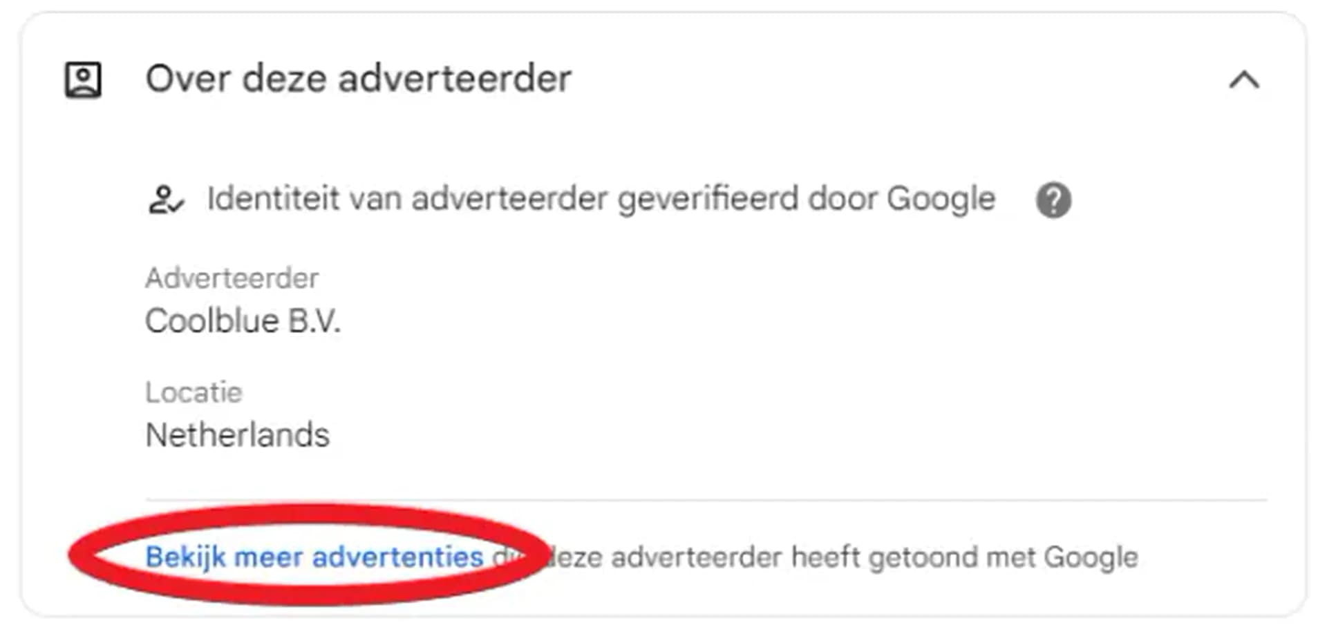 Stap 1: Zoek naar een advertentie van je concurrent en klik op het pijltje